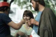 Paul and Bob on top of a tower block with a link aerial - it is pointing the wrong way, but this was a staged photo for a newspaper.